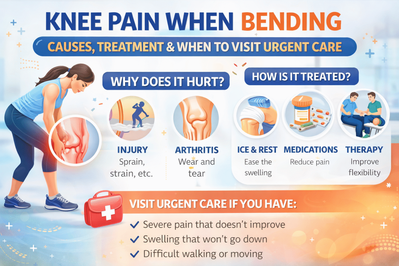 Now most people are dealing with knee pain when bending. It’s one of the most common reasons people search for urgent care near me for knee pain or walk into a clinic like America First Urgent Care looking for quick relief.