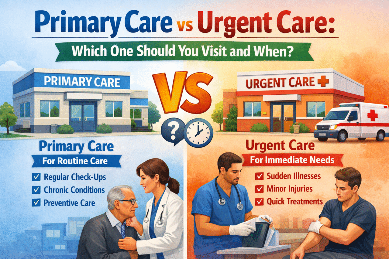 These are the conditions that require regular monitoring and personalized treatment plans. That’s why your primary care center plays an important role. Providers monitor your progress over time and modify prescription drugs or lifestyle advice as necessary. Urgent care simply isn’t designed for that kind of continuity.
